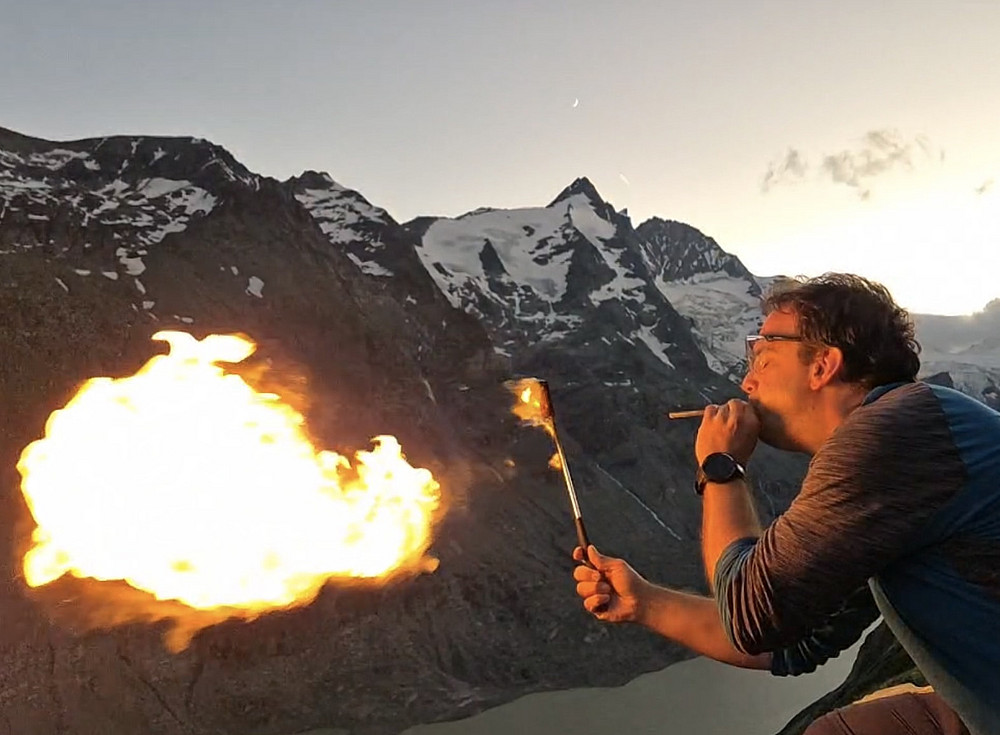 Samstagabend: Unter dem Motto Fire and Ice ein spektakuläres Feuer-Experiment-Programm, das Wissenschaft und Showeffekte eindrucksvoll verband.